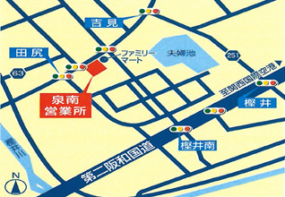 | 泉南営業所 | 住所:大阪府泉南郡田尻町吉見168番1 電話:072-465-2006(代) FAX:072-465-2007 大きな地図で見る |